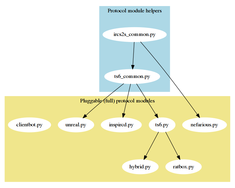 PyLink is an a modular, plugin-based IRC services framework. It uses swappable protocol modules and a hooks system for calling plugins, allowing them to function regardless of the IRCd used.